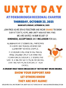 Foxborough Regional Charter School Elementary School is proud to celebrate Unity Day — a national movement to promote kindness, acceptance, and inclusion for all.