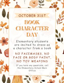 On Friday, October 31st, students in Kindergarten through Grade 4 are invited to come to school dressed as their favorite character from a book. It’s a wonderful way to celebrate reading, creativity, and imagination!